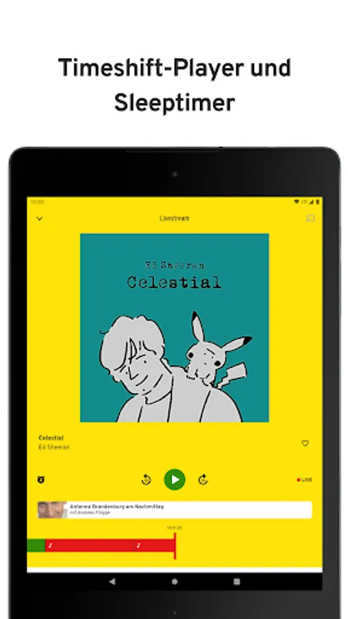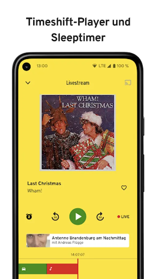 Select the live stream for your region and listen more regionally. Use the new timeshift player to listen to Antenne Brandenburg with a delay of up to 4 hours. Slide the timeline to the left or tap one of the playlist items to listen to that feel-good song, missed interview, or news in full.