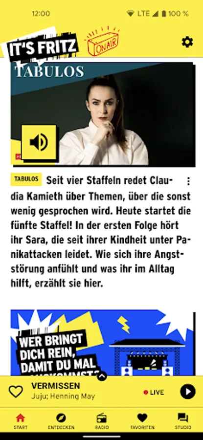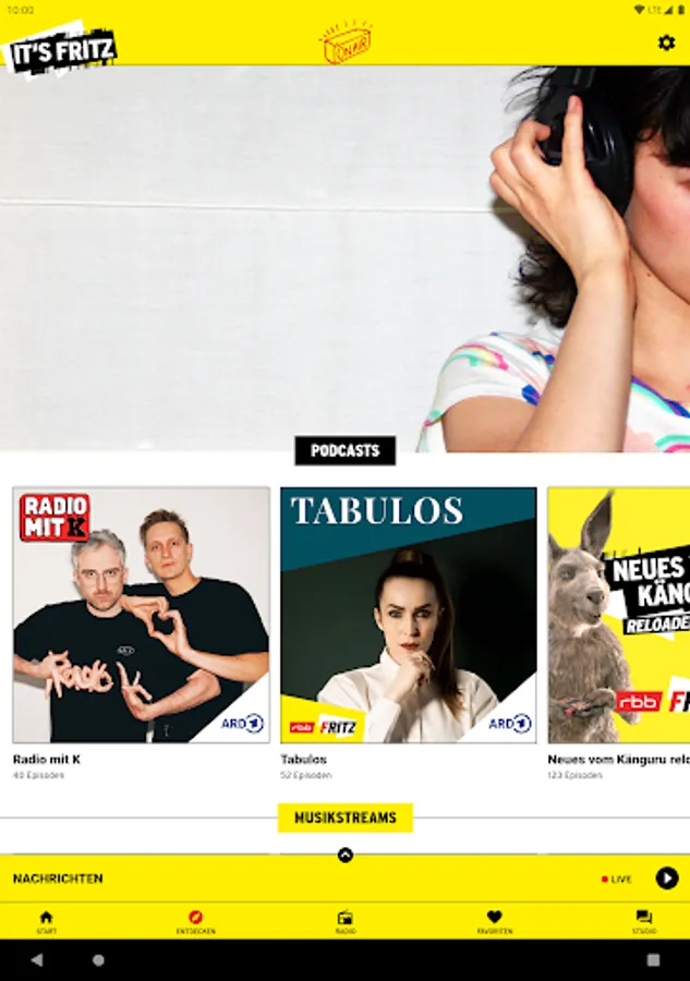 Brand new is our feed, where you can read and hear things you shouldn't miss. You can also listen to the music streams of the last seven days. In addition, all FritzJingles and the current podcasts to listen to, subscribe to and download.