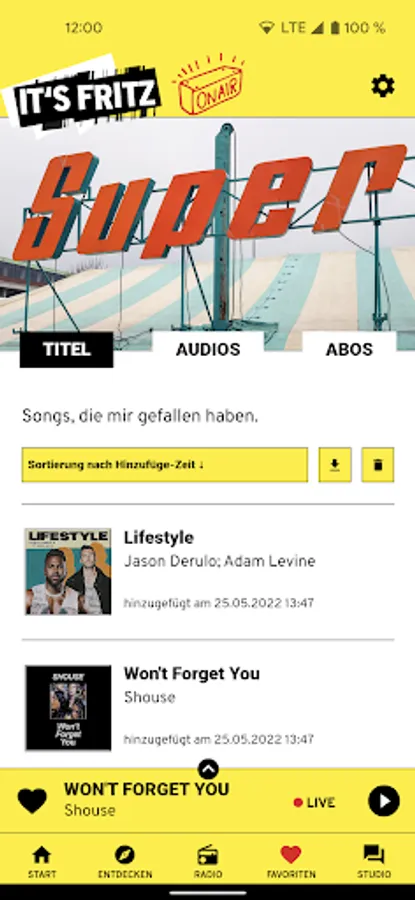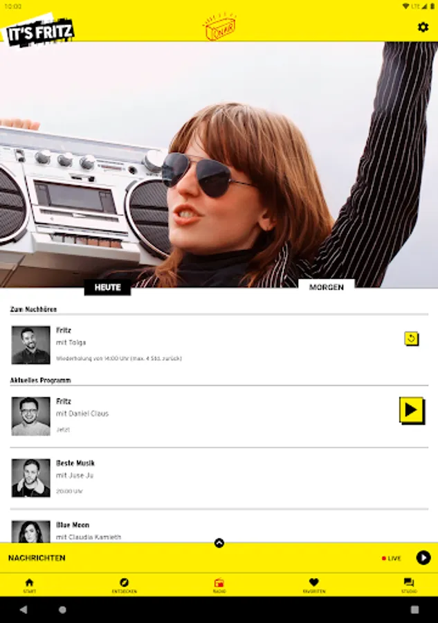 With the FritzApp you can hear us in the live stream and send us messages directly to the studio. In the app you can also find out what is and was currently on our radio: from titles, artists, playlists, programs, moderators to current Fritz campaigns. You can save your favorite titles, audios and podcasts on the favorites list.