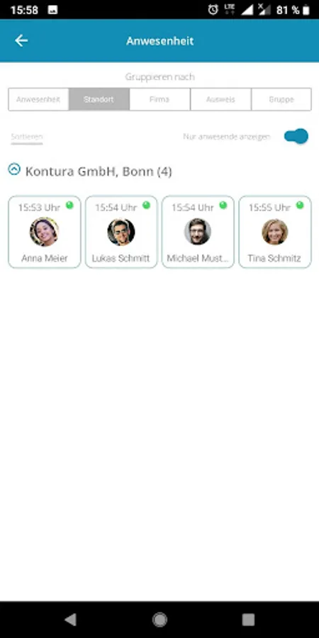 Gate is part of the Service Alliance product range (http://www.service-alliance.net) and is used as an electronic ID card or time attendance terminal. With this app, bookings (coming, going, pause ..) via NFC, QR code, Bluetooth and manual input possible.