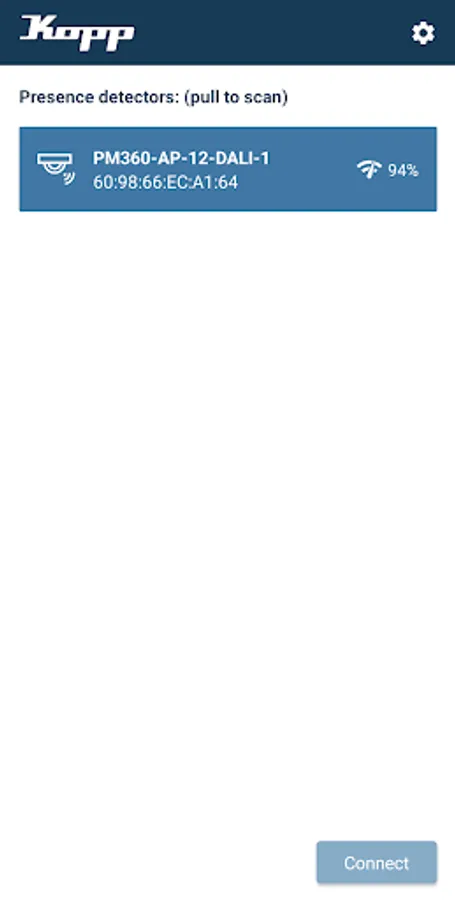 The app allows intuitive setting and operation of the Kopp occupancy sensors (DALI-2). The communication to the occupancy sensors is done via Bluetooth. All possible settings of the occupancy sensor are shown in the app and thus allow an individual adjustment of the settings.