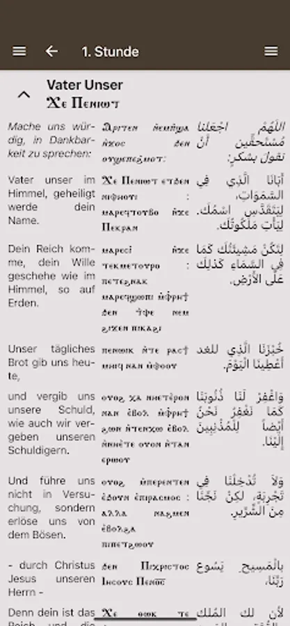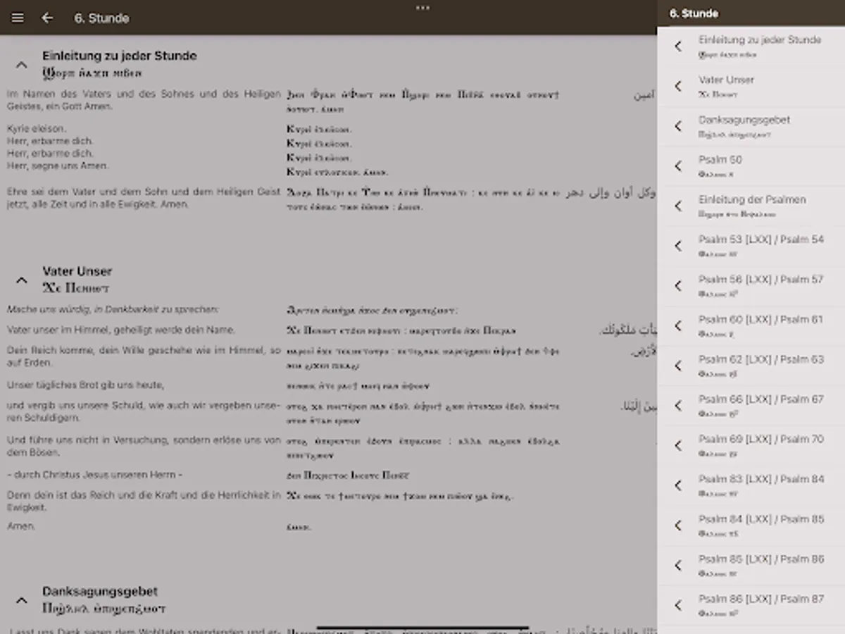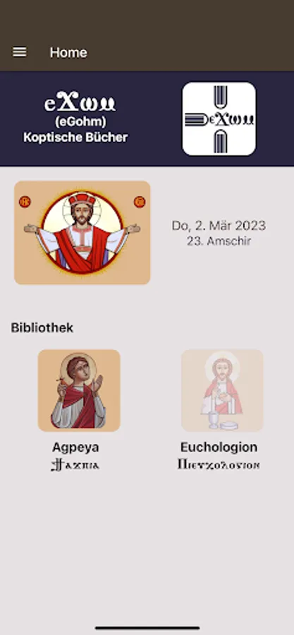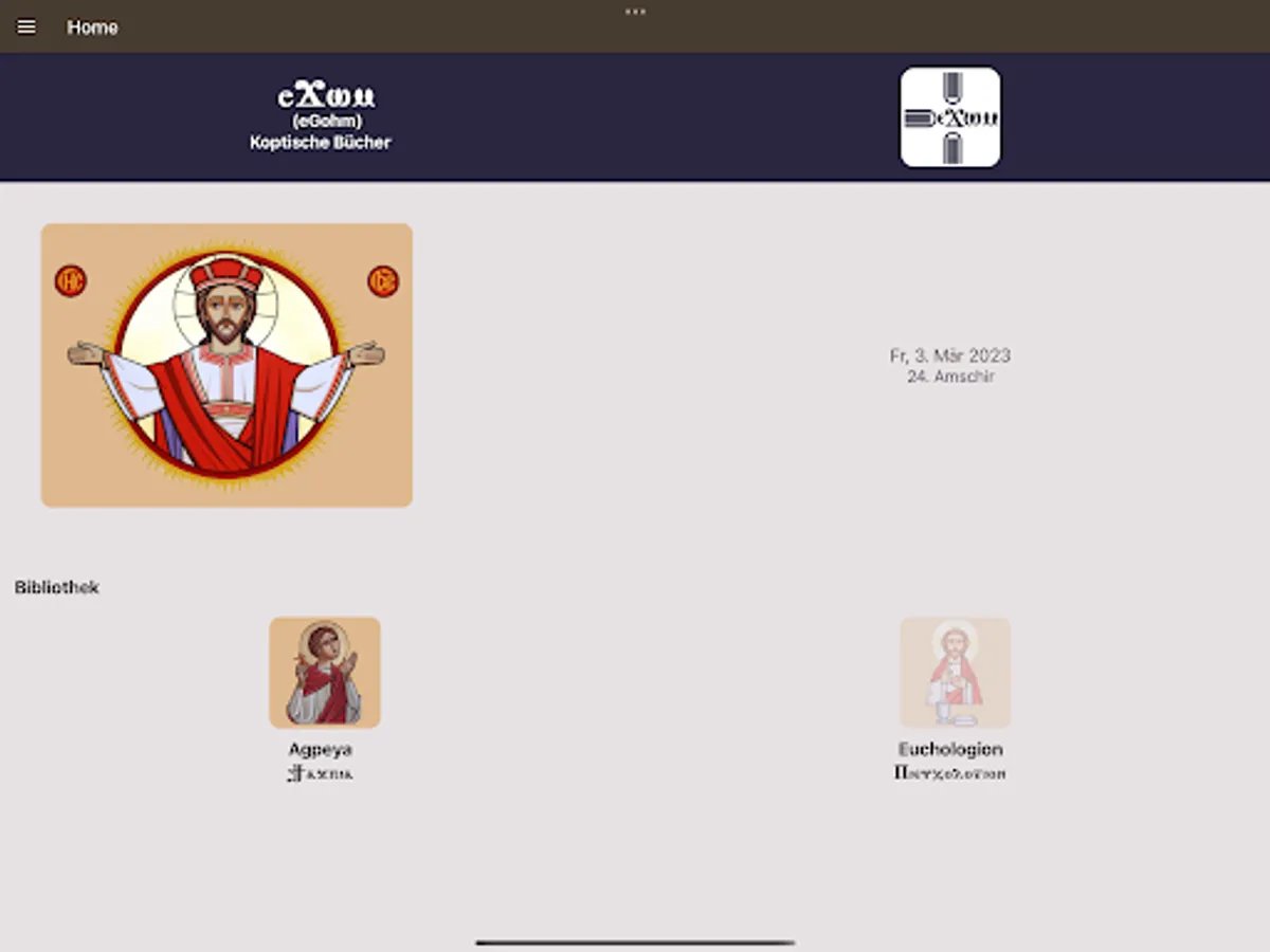 The app eϪⲱⲙ (eGohm) – Coptic Books contains prayers, books and texts of the Coptic Orthodox Church in Coptic, German and Arabic. Inspired by the widespread app Coptic Reader, this primarily serves the German-speaking area.