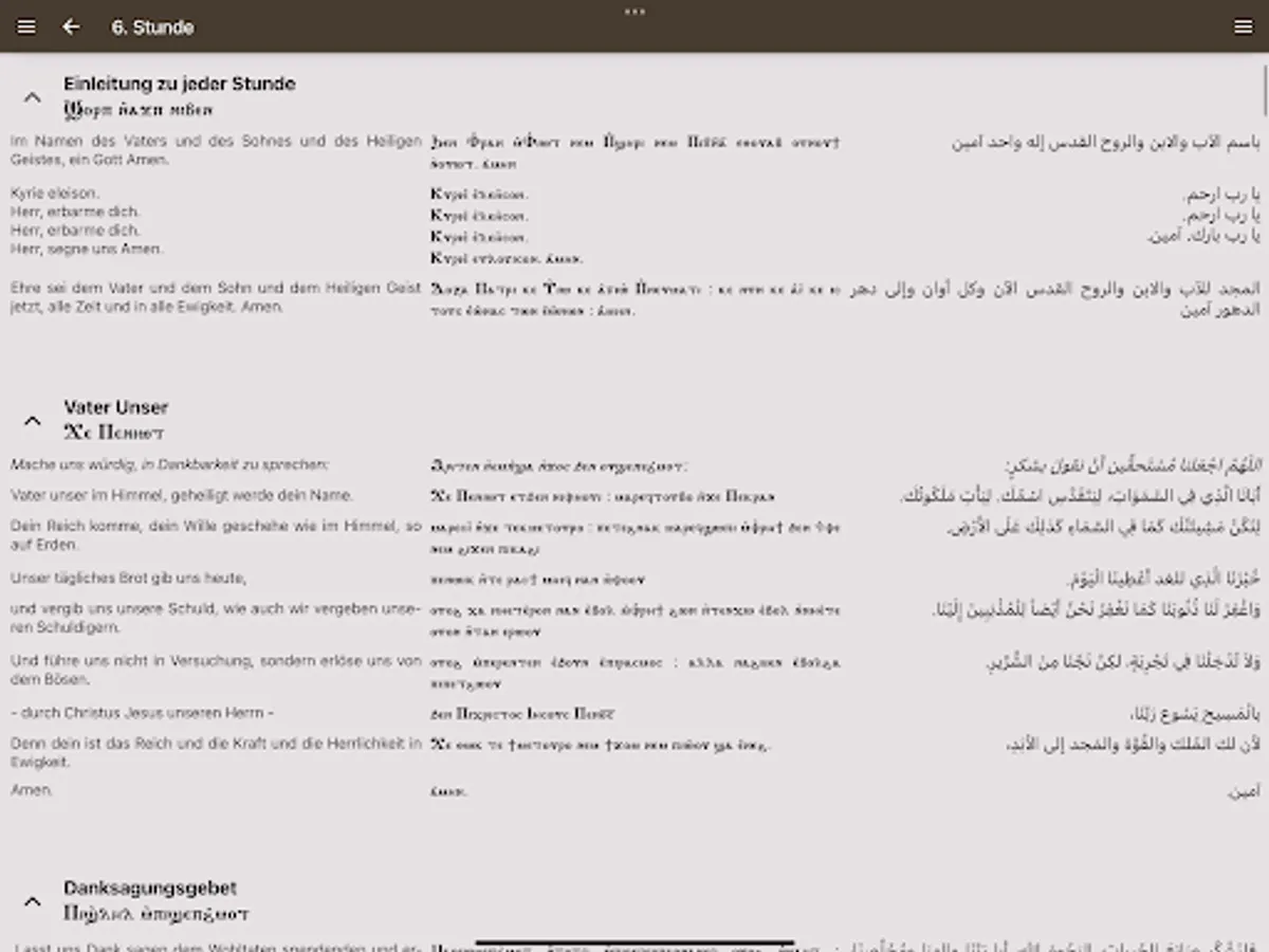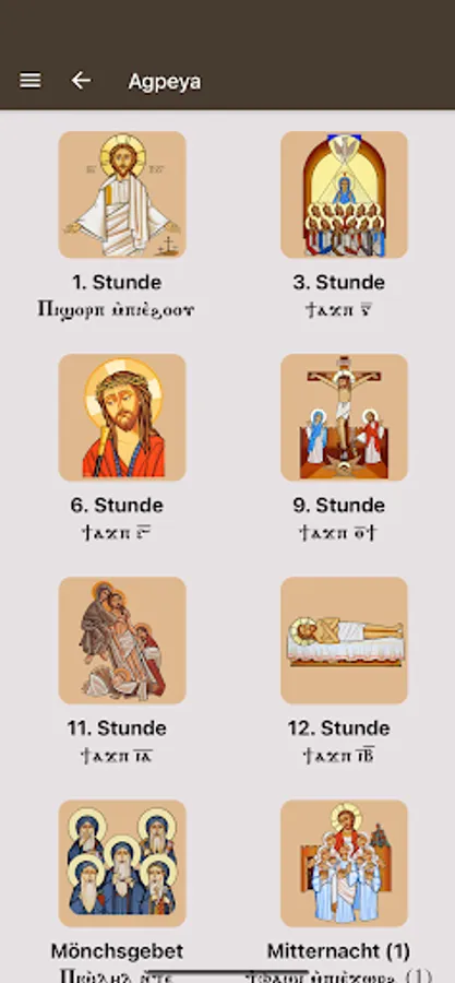 The app currently includes the Coptic prayer book - the Agpeya. More books and texts will be added one after the other.