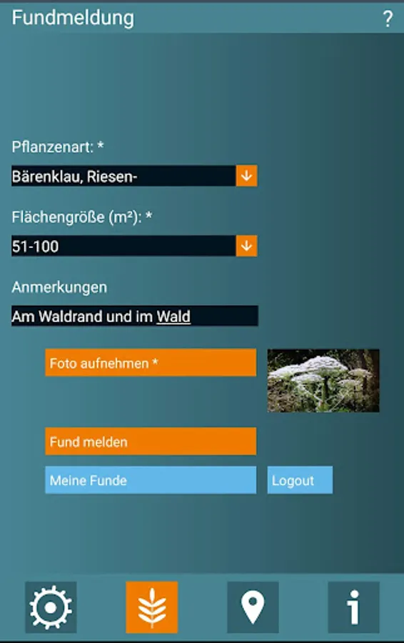 - Inform us your GPS supported findings that we map in a database. The more players participate in the Find and Sign the neophyte, the more we know about this new plant communication and the better we are planning control measures.