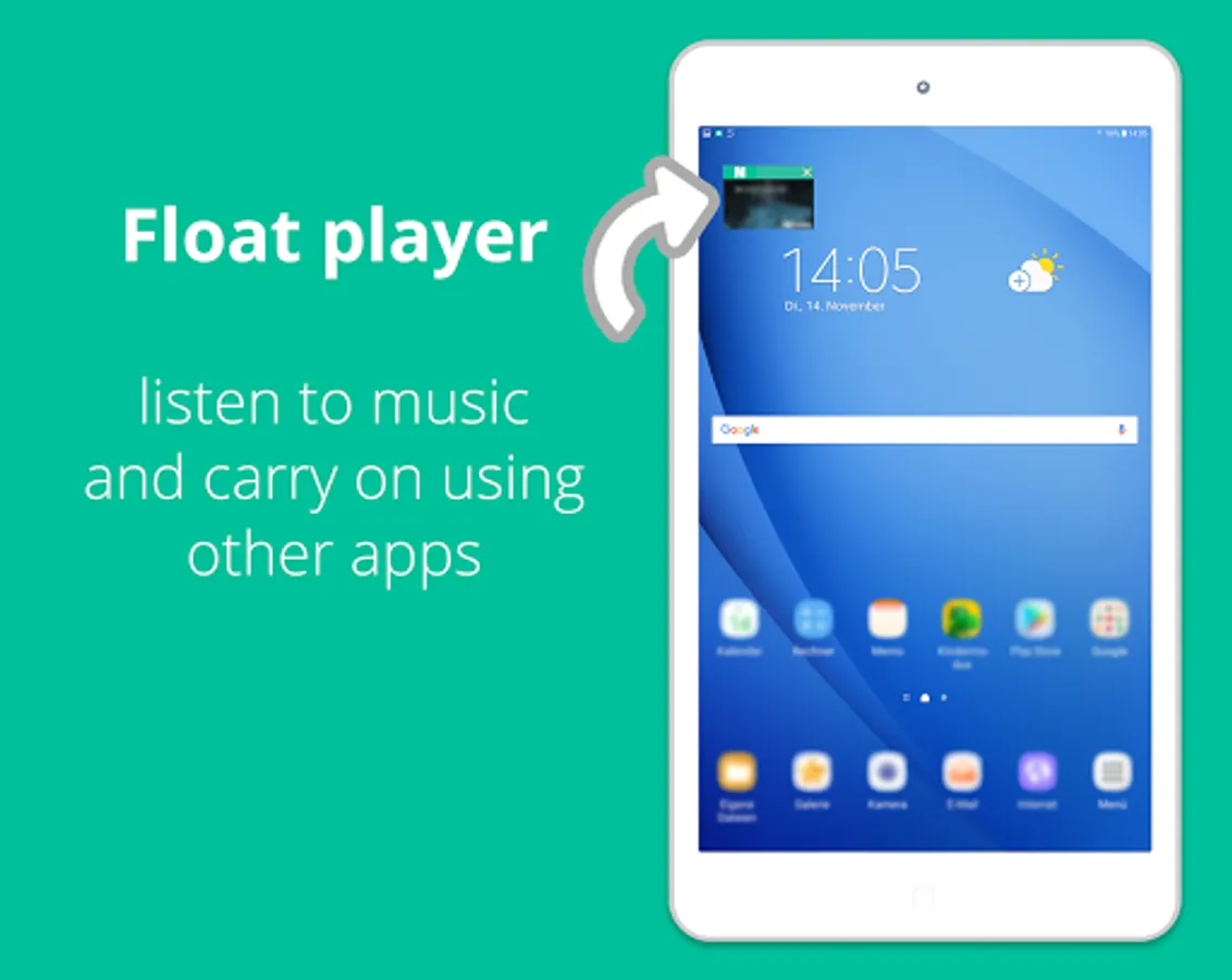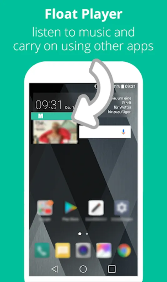- In this mode, the app will be closed and the video will be minimized on the homescreen in a popup window (Floating Player). The minimized window can be moved as desired. In this way you can open and use more apps while watching the video.