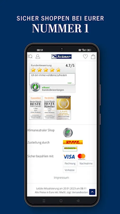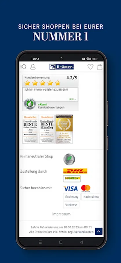 We read every review and look forward to your feedback on our app. Please send us your opinion about our app and what you think we could improve to android@kraemer.de