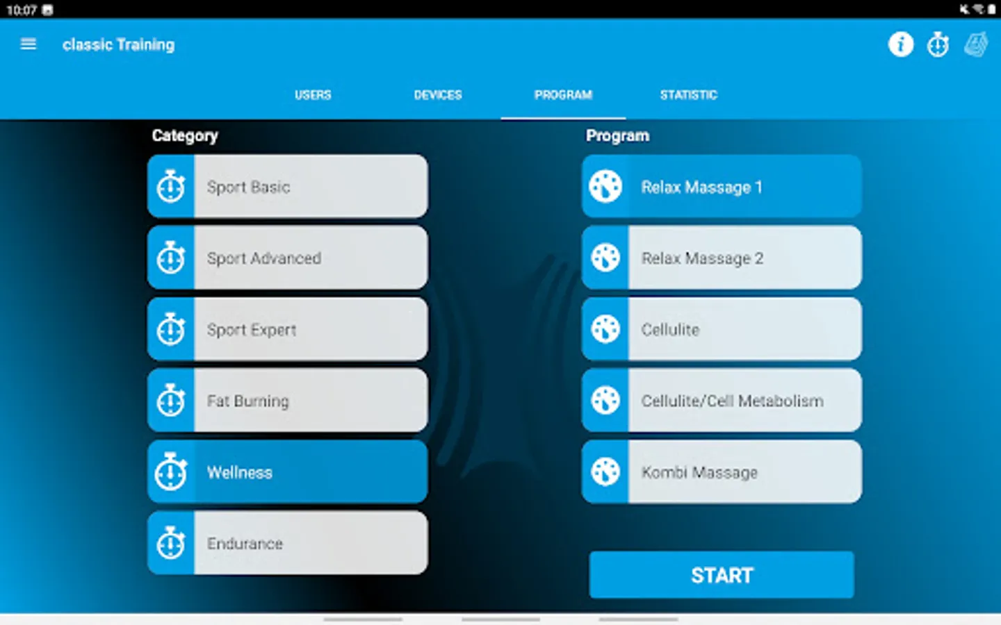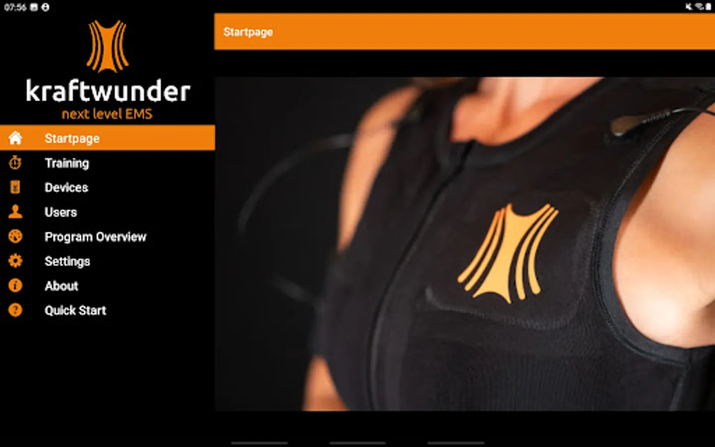 • "Other" to connect to kraftwunder EMS bluetooth devices, synchronize user data between user's end devices, scan QR codes, prevent the phone/tablet from going to sleep.