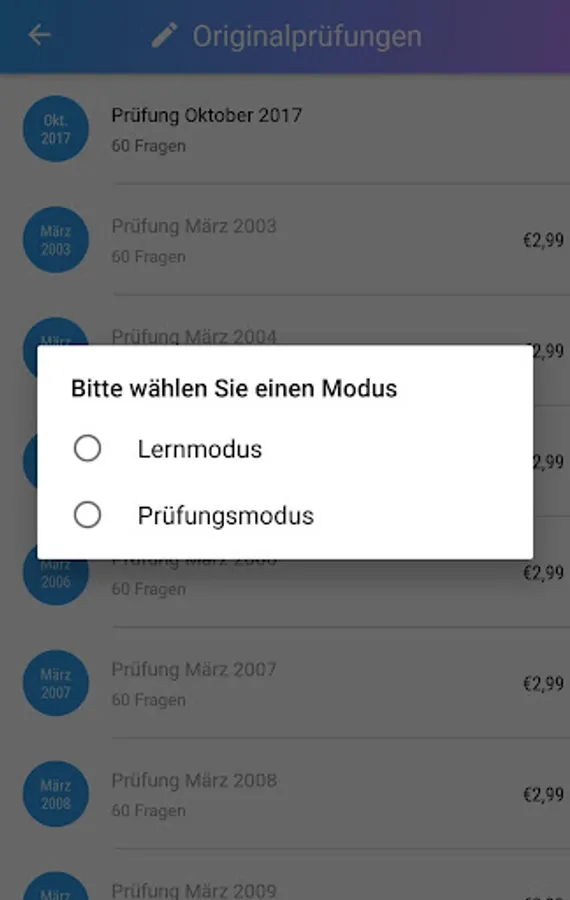 Additional exams and topic questions can be purchased as in-app purchases. (The full version of the ikreawi app with all written and oral questions costs € 129.99)