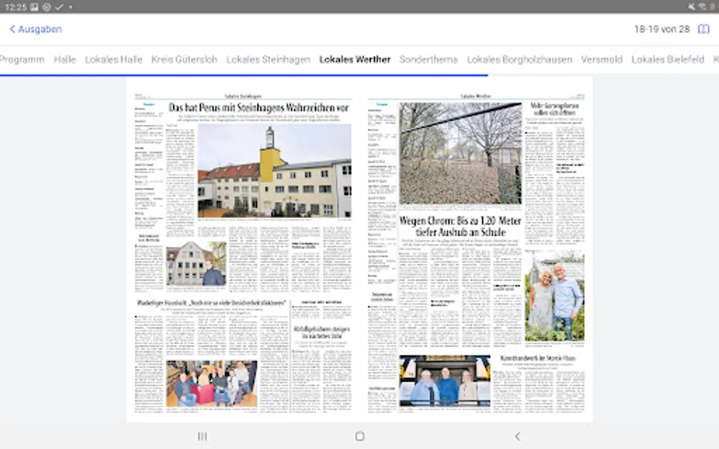 • The well-known ePaper version in a 1:1 image of the printed newspaper (pdf) and a reading mode optimized for mobile devices (article view)