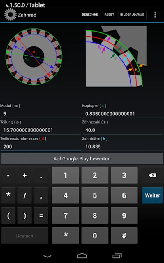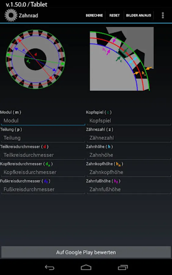 Color graphics facilitate the assignment of terms to the respective gear sizes.