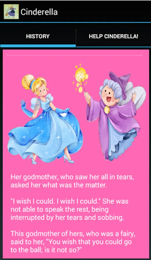 The application Cinderella deals with the famous fairy tale and consists of two parts: the picture book and interactive games. The text can be read out by professional speaker in the picture book: the user can switch between several world languages. In this way, Cinderella can also help you learn foreign languages. In the second part, the user helps Cinderella to solve some housekeeping tasks and thereby trains his own cognitive skills, since his logical thinking is encouraged.