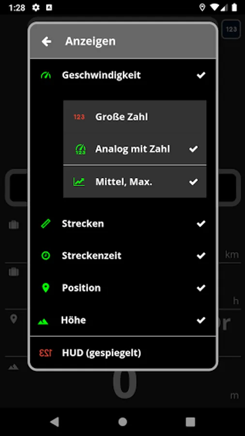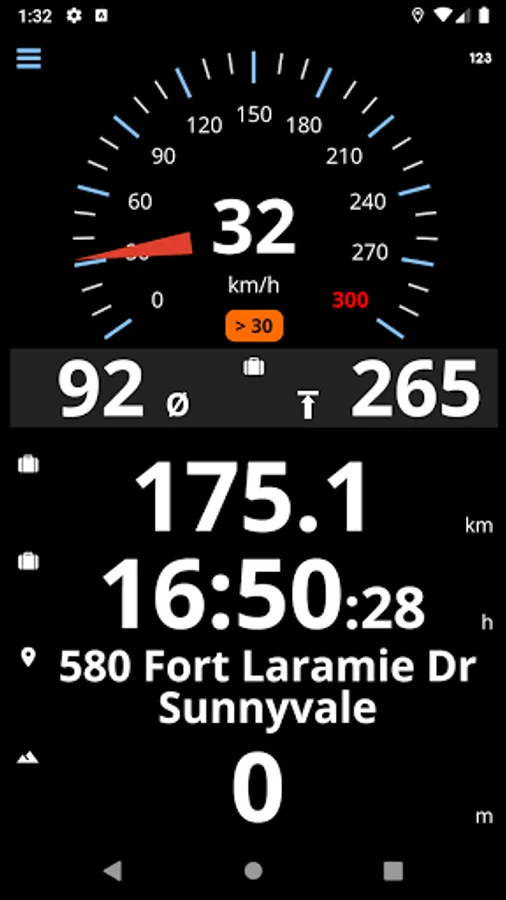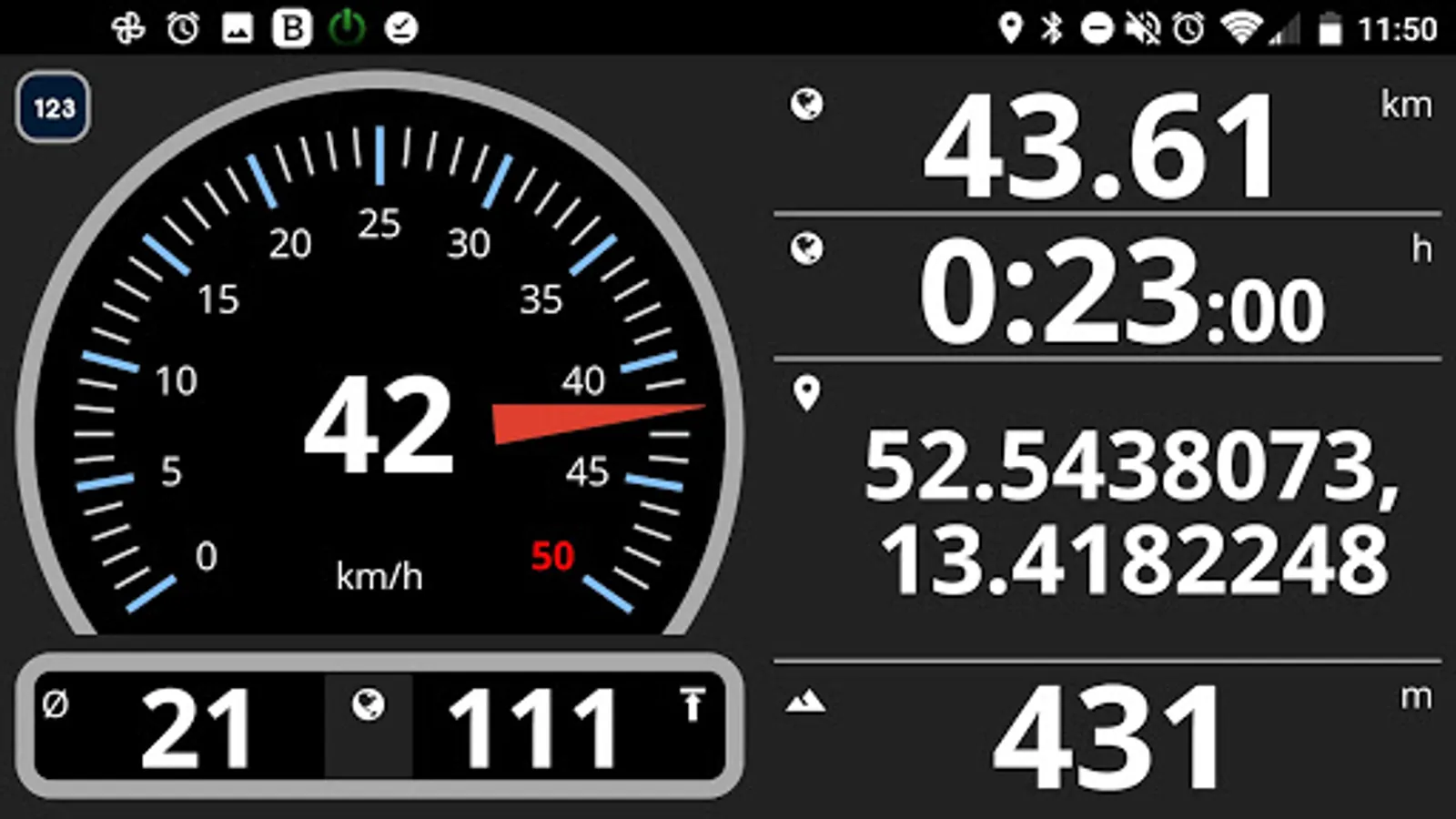Use this GNSS speedometer with altitude, location, and calculated distances, especially when you are not driving a car but going by bicycle, by train, by boat or even by airplane.