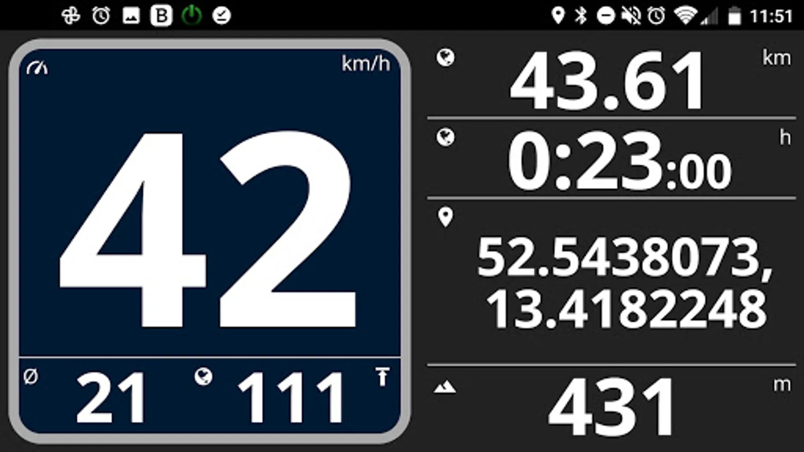 Use this GPS speedometer with altitude, geo-location and current time, especially when you are not driving a car but going by bicycle, by train, by boat or even by airplane.