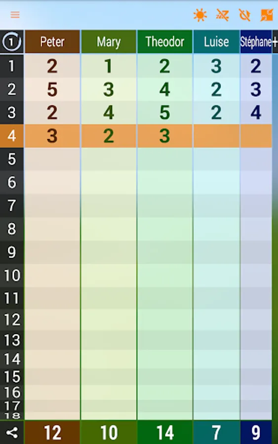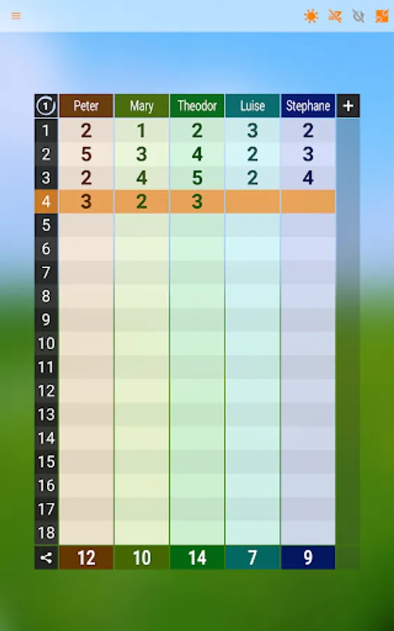 Tap the sharing icon at the corner table to share your score card as an image or to send.