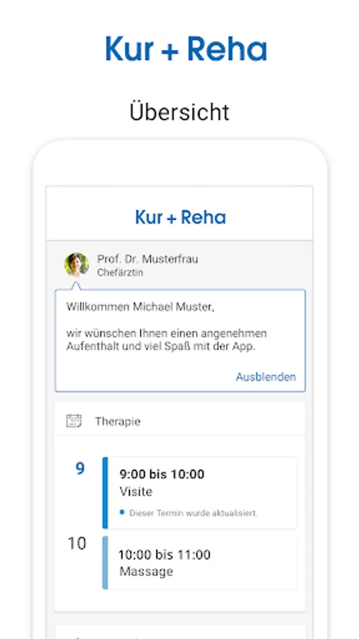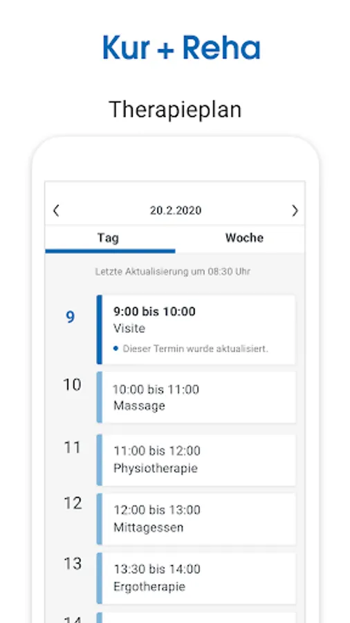 Your individual therapy plan as well as information on therapy times, times and possible changes in real time