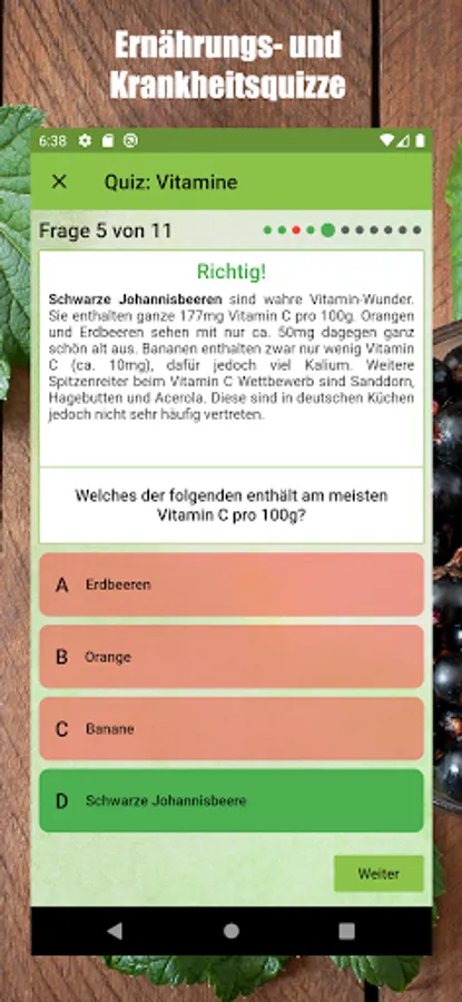• Quizzes with detailed explanations about health, nutrition and illnesses
