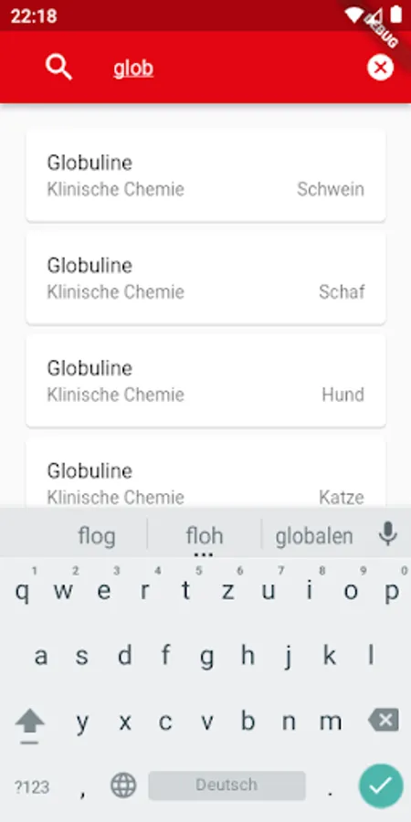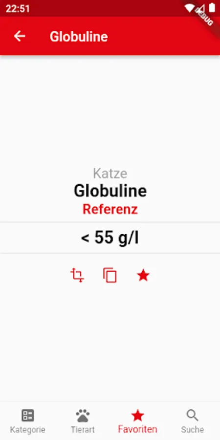 The app provides a database of laboratory reference values that can be handily searched within the app.