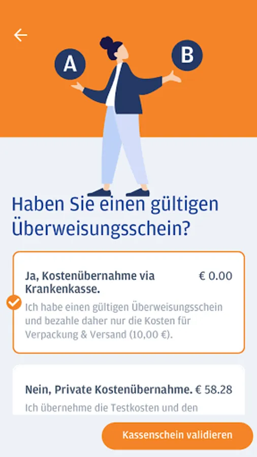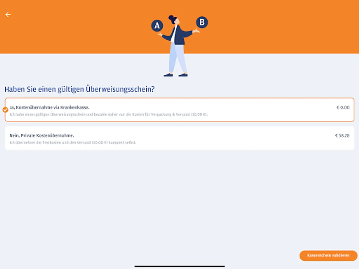 You look for the test you want, order it with your referral slip and then send it to our certified medical laboratory. You will then receive the result via QR code on your app.