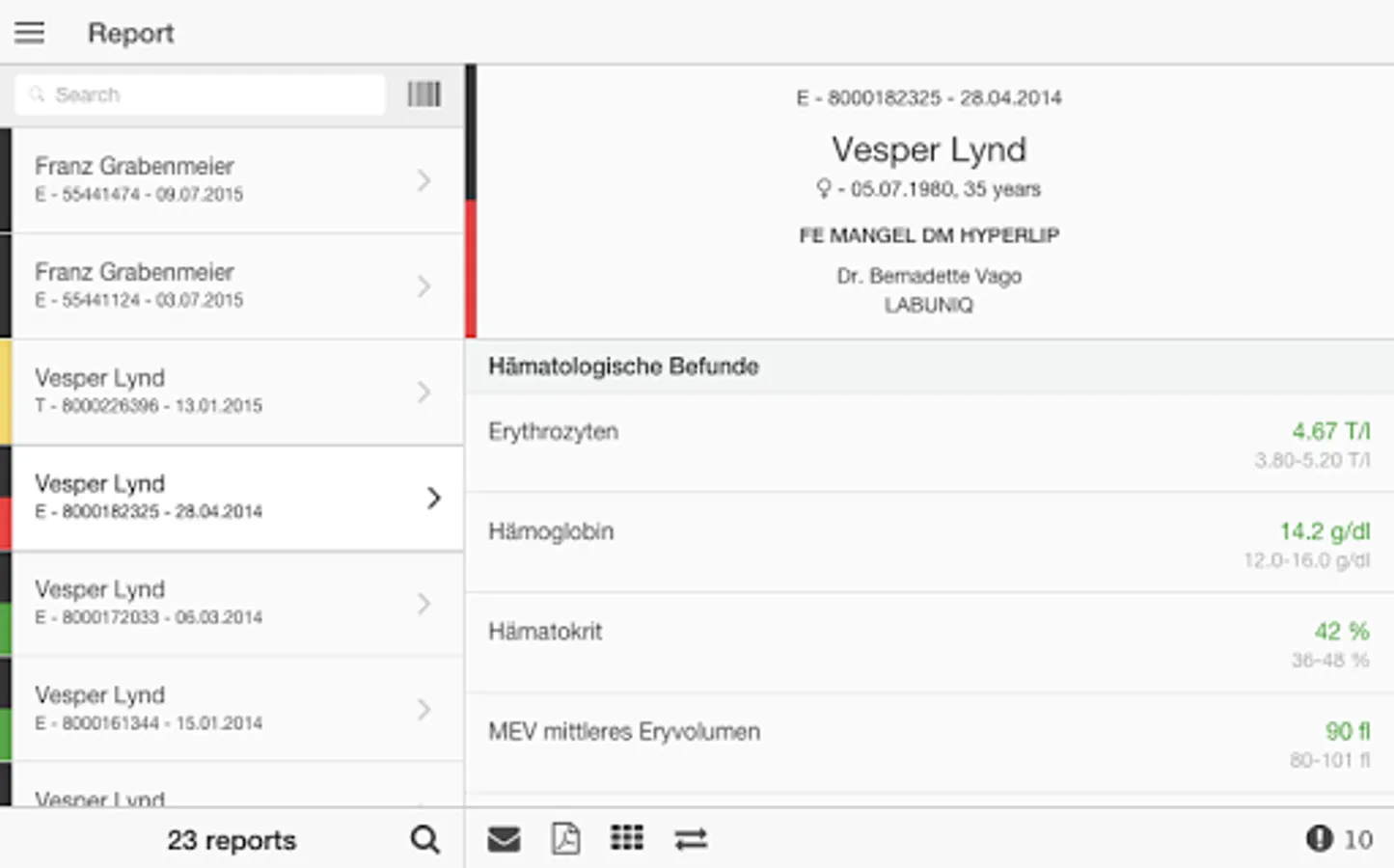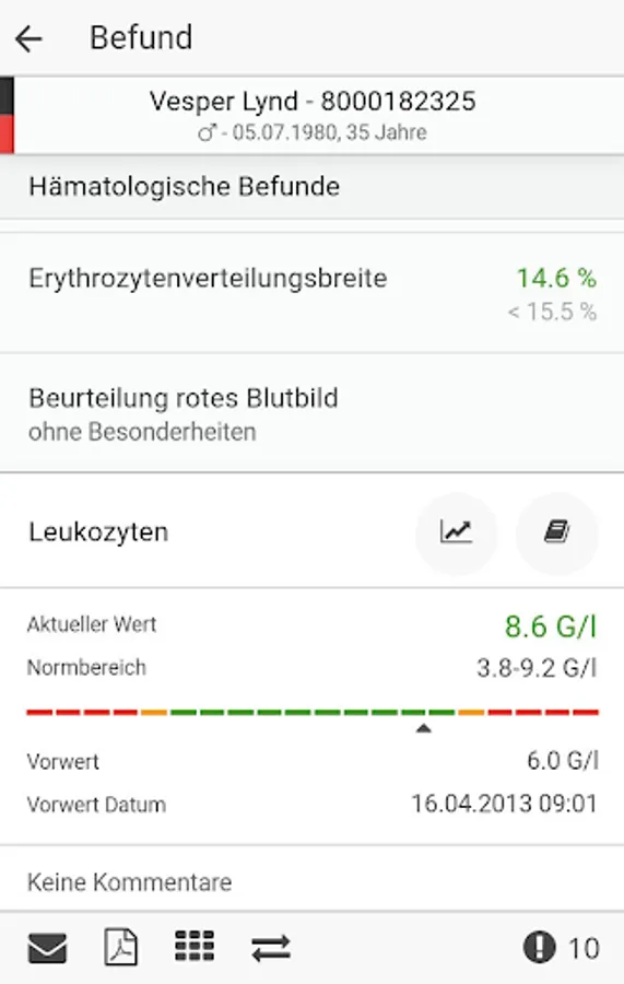 Compact: The most important information at first glance. Select pathological results, compare current laboratory values with the previous results or view the results in graphical history.