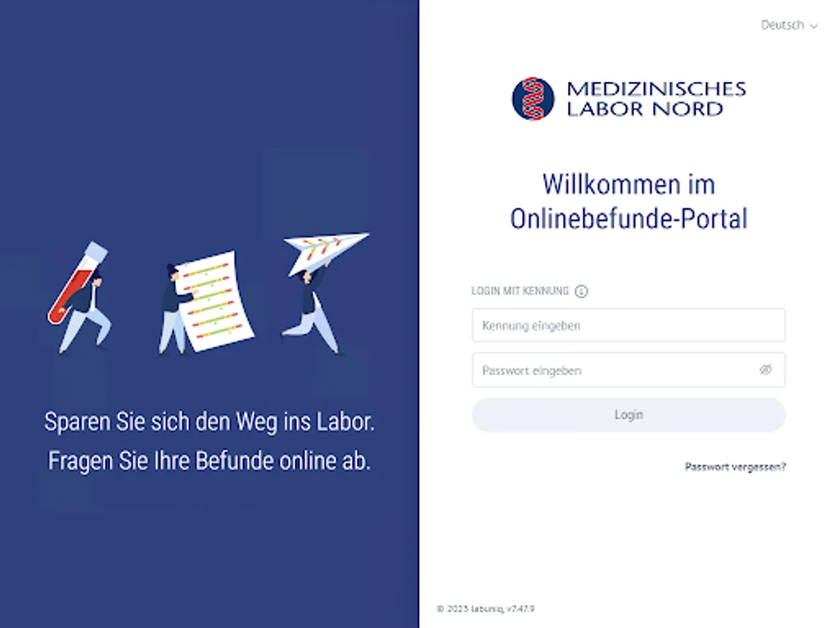 This app enables the senders of the Medical Laboratory North to view their findings on an Android smartphone or tablet.
