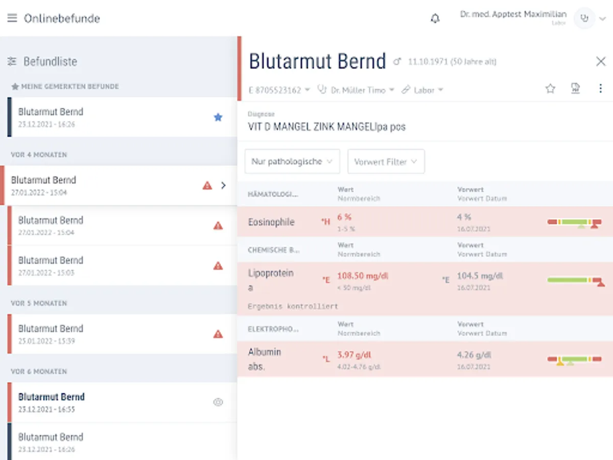 This app enables the senders of Labor Lademannbogen MVZ GmbH to view their findings on a smartphone or tablet.