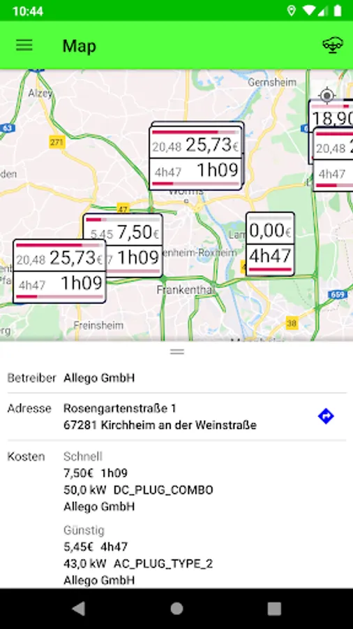 Quick and easy to the cheapest charging station for your electric car. A clear map shows you at a glance where you can load the cheapest and where the fastest.