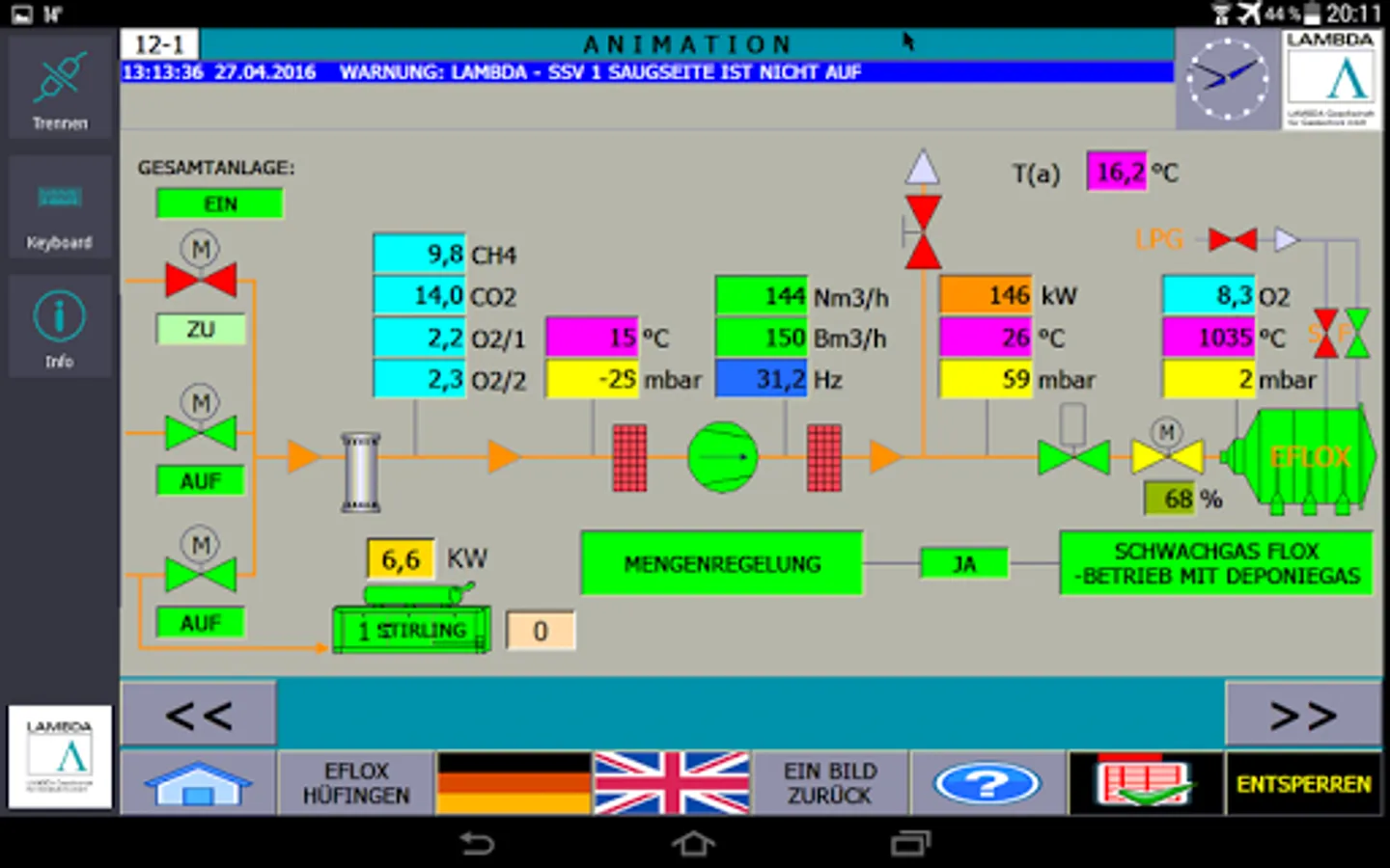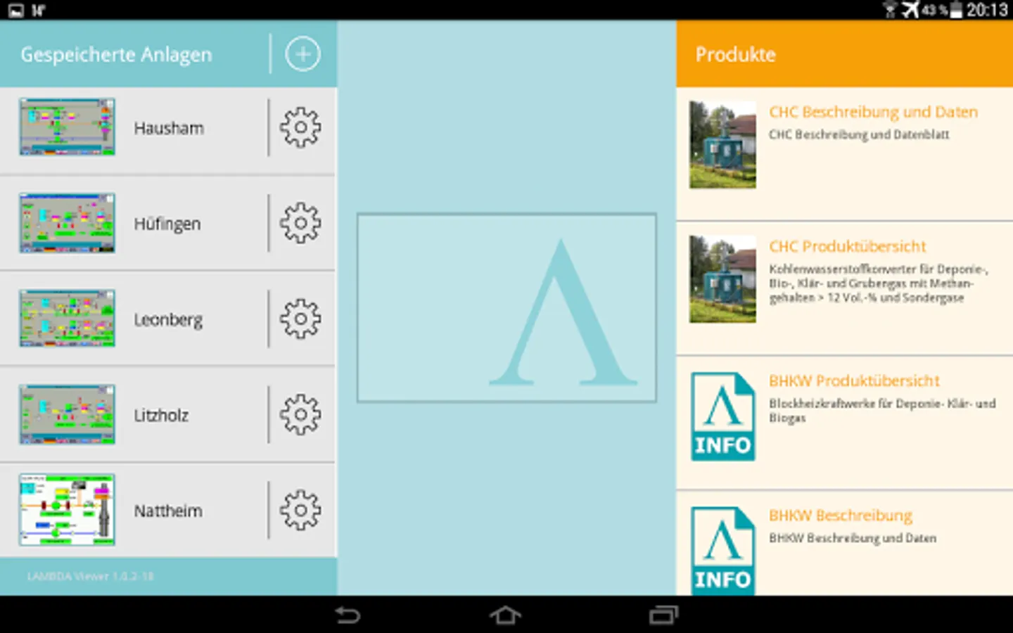 The LAMBDA Viewer is suitable for operation monitoring and remote control of degassing the LAMBDA Society for gas mbH. The following series can be monitored and controlled remotely with the app via smartphone or tablet PC: LAMBDA CHC, LAMBDA Flox, LAMBDA Stirling and LAMBDA OCHC.