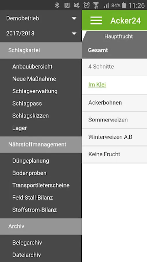 The acreage index Acker24 always and everywhere allows the CC-compliant documentation on smartphone and tablet.