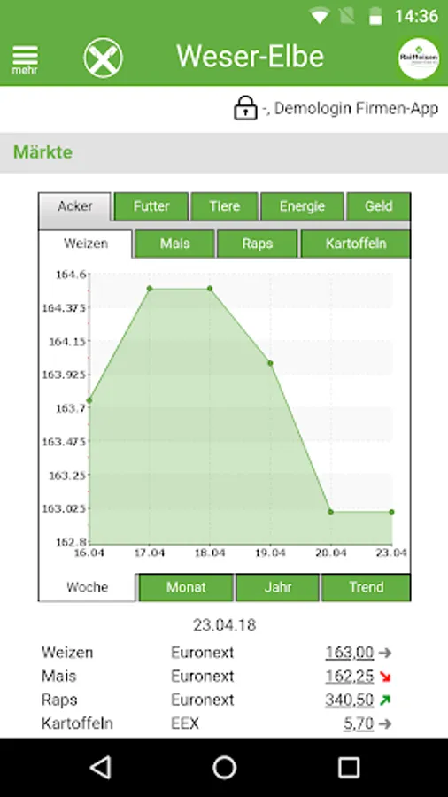 Raiffeisen Weser-Elbe eG offers an information and service portal for farmers with the following contents: