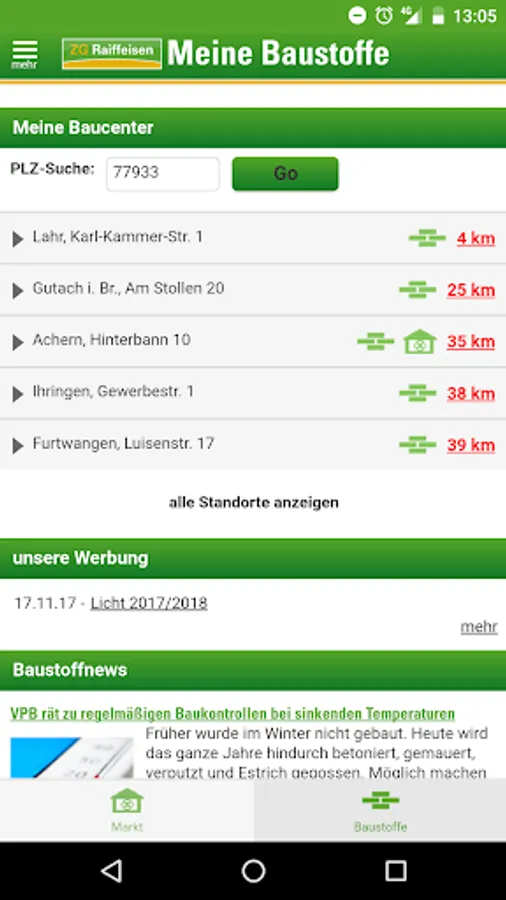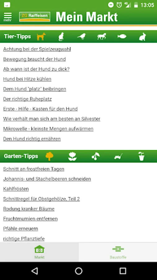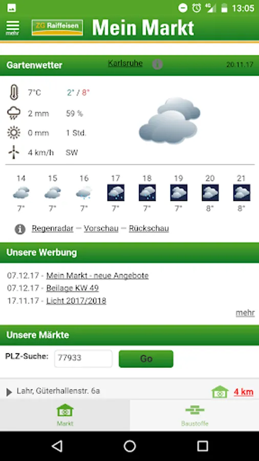 Informative app ZG Raiffeisen eG with the following contents: