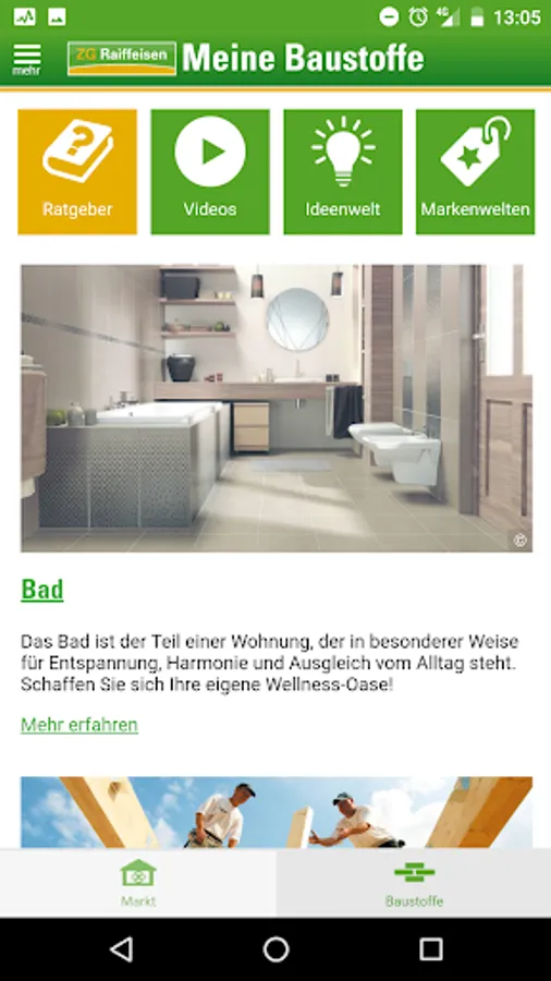- Building material guide and much more useful information on construction, renovation and refurbishment in the form of video tutorials, worlds of ideas, product advisors and brand worlds.
