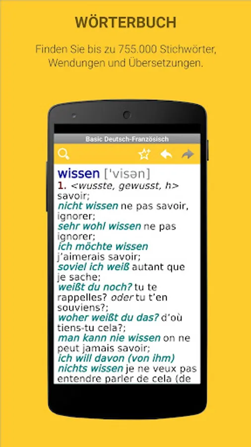 Try the innovative search, translation and learning functions before you buy and select the perfect-fit French dictionary for you. You can select via in-app purchases from the following options: