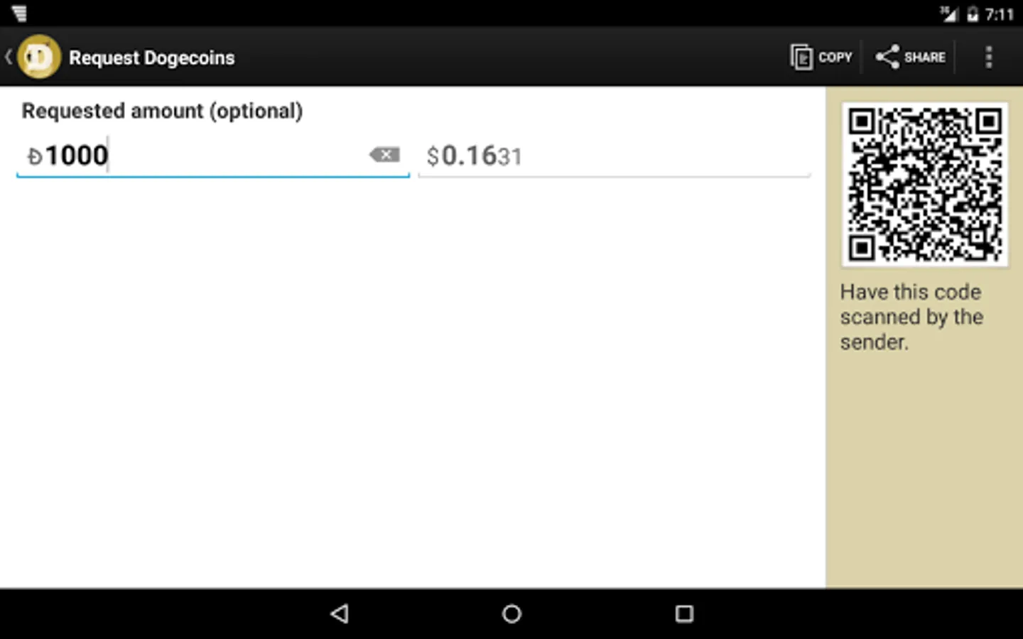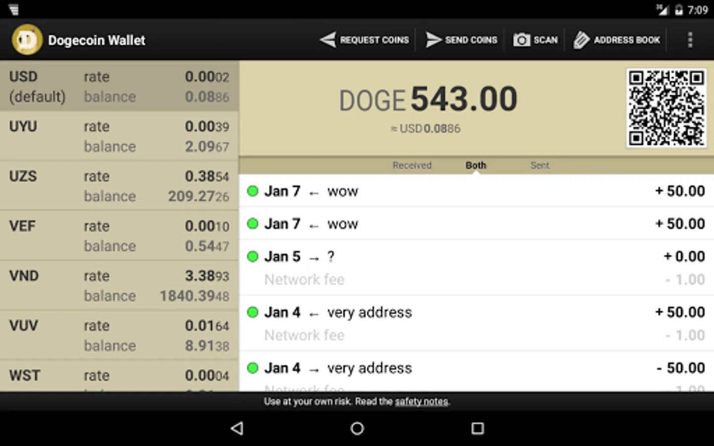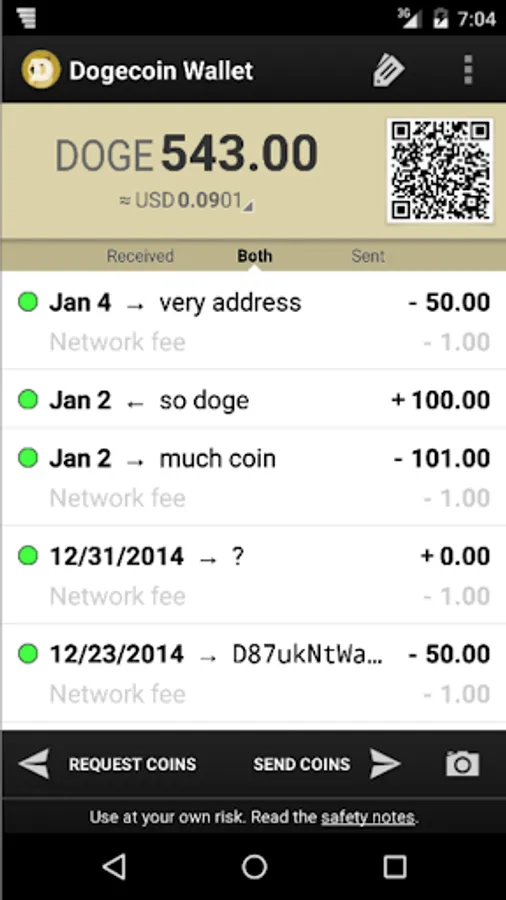• Sending and receiving of Dogecoin via NFC, QR-codes or Dogecoin URLs.
