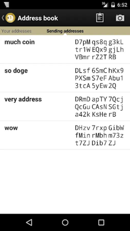 • Address book for regularly used Dogecoin addresses.