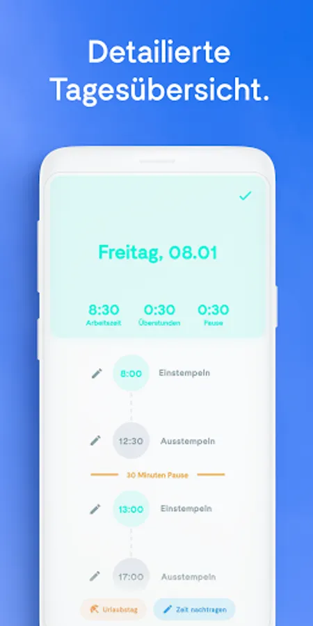 ✔ Reliable time recording including vacation days.