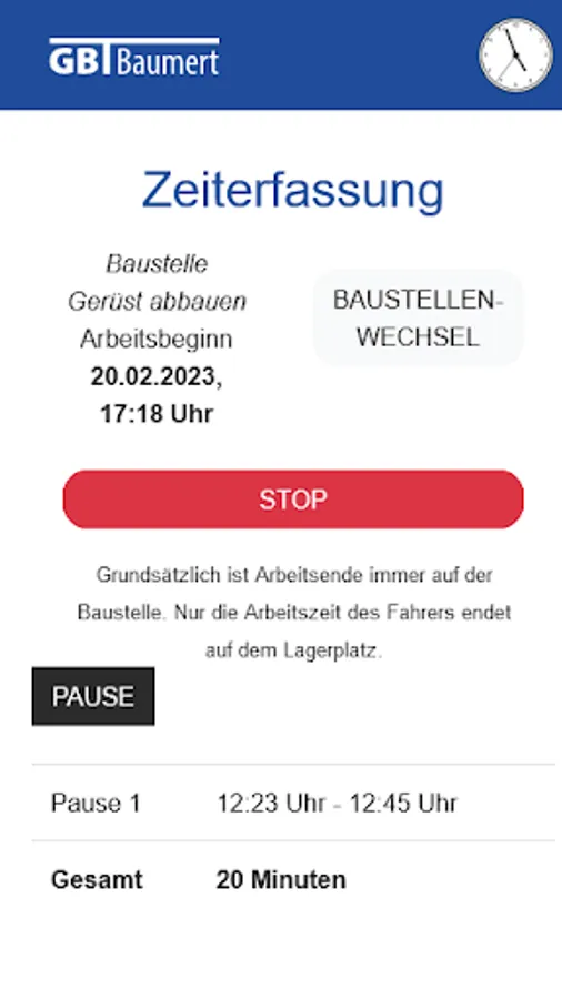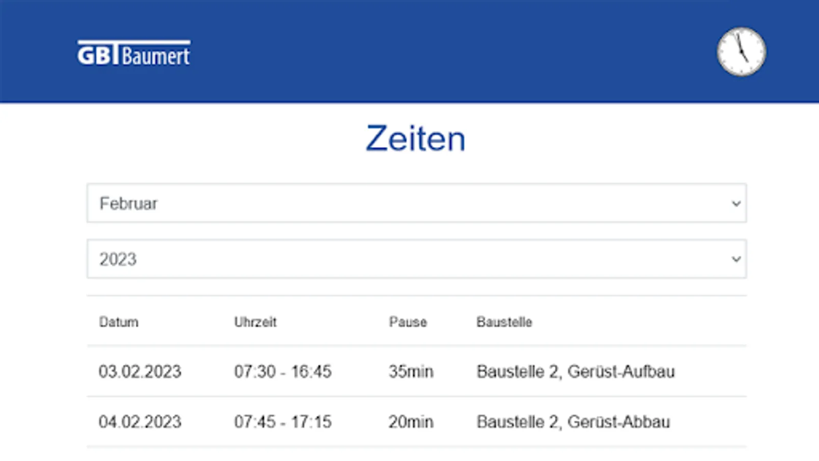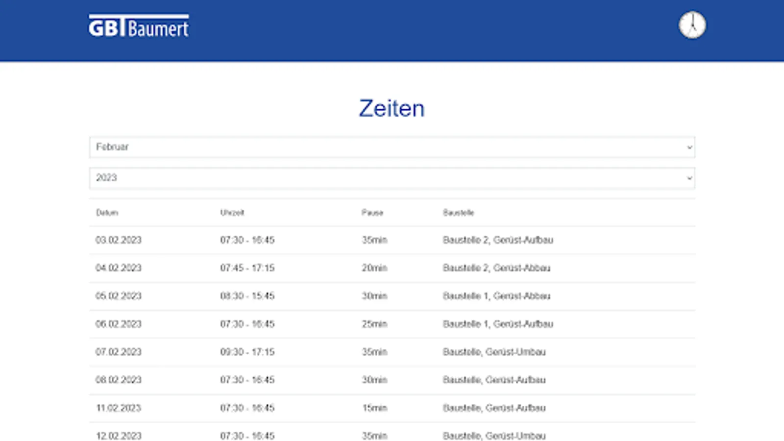 Adapted to the needs of scaffolding technology companies. Replaces the time sheet on construction sites. Central recording of working hours of all employees with details of activity and construction site. Overview and evaluation of hours worked. Including recording of breaks, holidays and sick days.