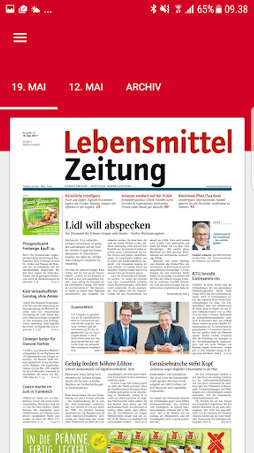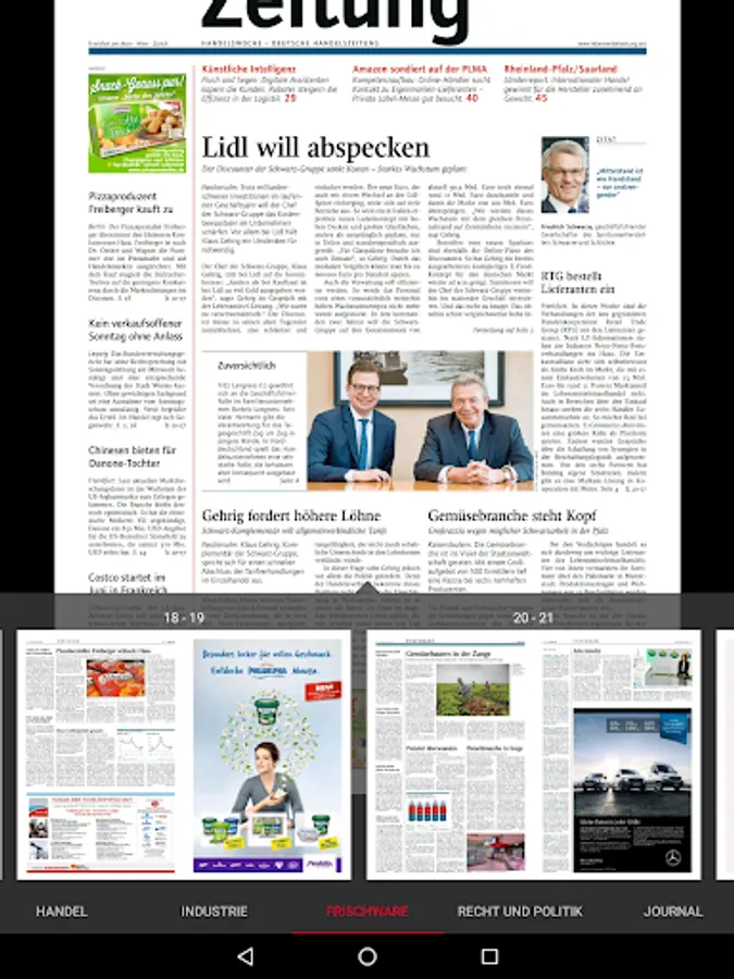 Lebensmittel Zeitung (LZ) is the leading trade and business newspaper of consumer goods in Germany. News, analysis and background reports and in-depth information on marketing strategies, product range and sales concepts of German and international commercial and industrial companies, LZ is an indispensable resource for top and middle management in the industry.