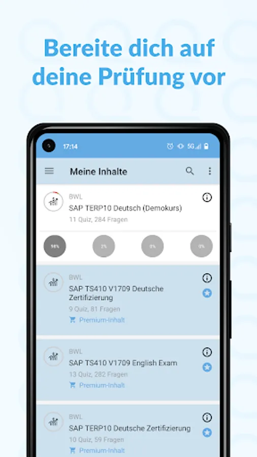 Prepare for your SAP © TS410 certification as “SAP Certified Application Associate - Business Process Integration with SAP S / 4HANA”! In this learning app you will find various certification questions from the certification for the system 1709, 1809 and 1909 in German and English. The questionnaire for the previous version TERP10 is available as a sample view. The questionnaires contain over 1,000 questions from the areas