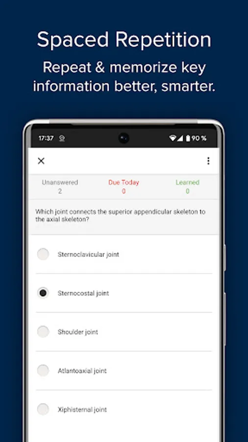 - Spaced Repetition Quiz: reinforce knowledge, driven by a smart learning algorithm