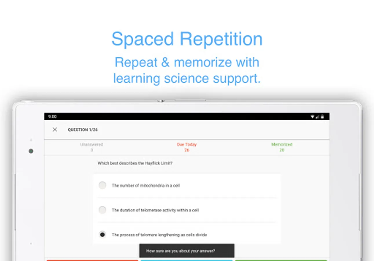 - Spaced Repetition Quiz: reinforce knowledge, driven by a smart learning algorithm