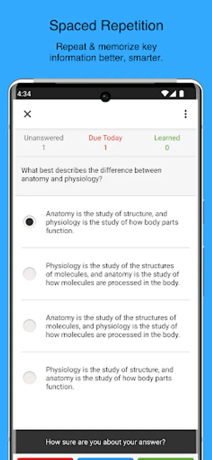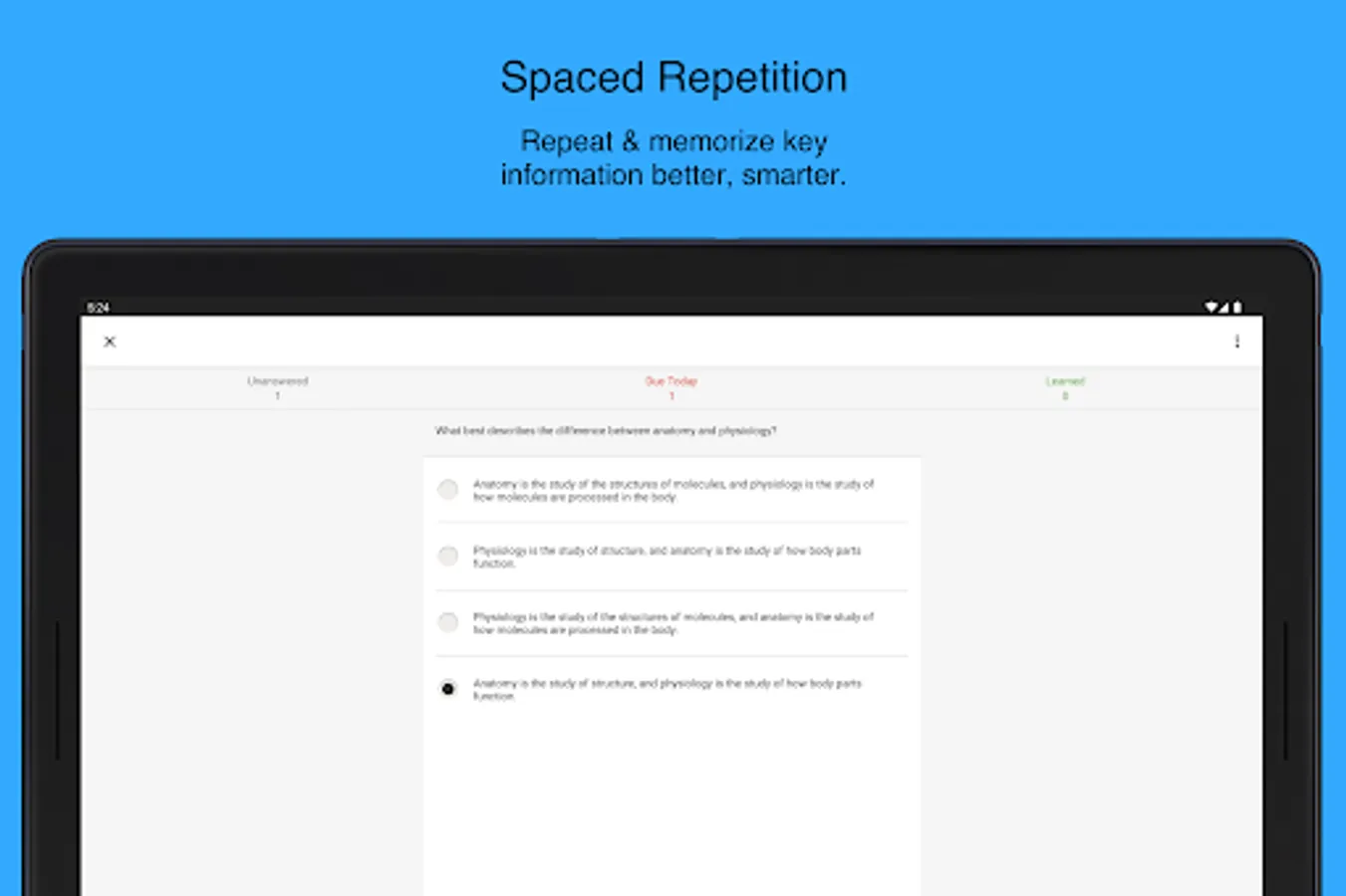 - Spaced Repetition Quiz: reinforce knowledge, driven by a smart learning algorithm