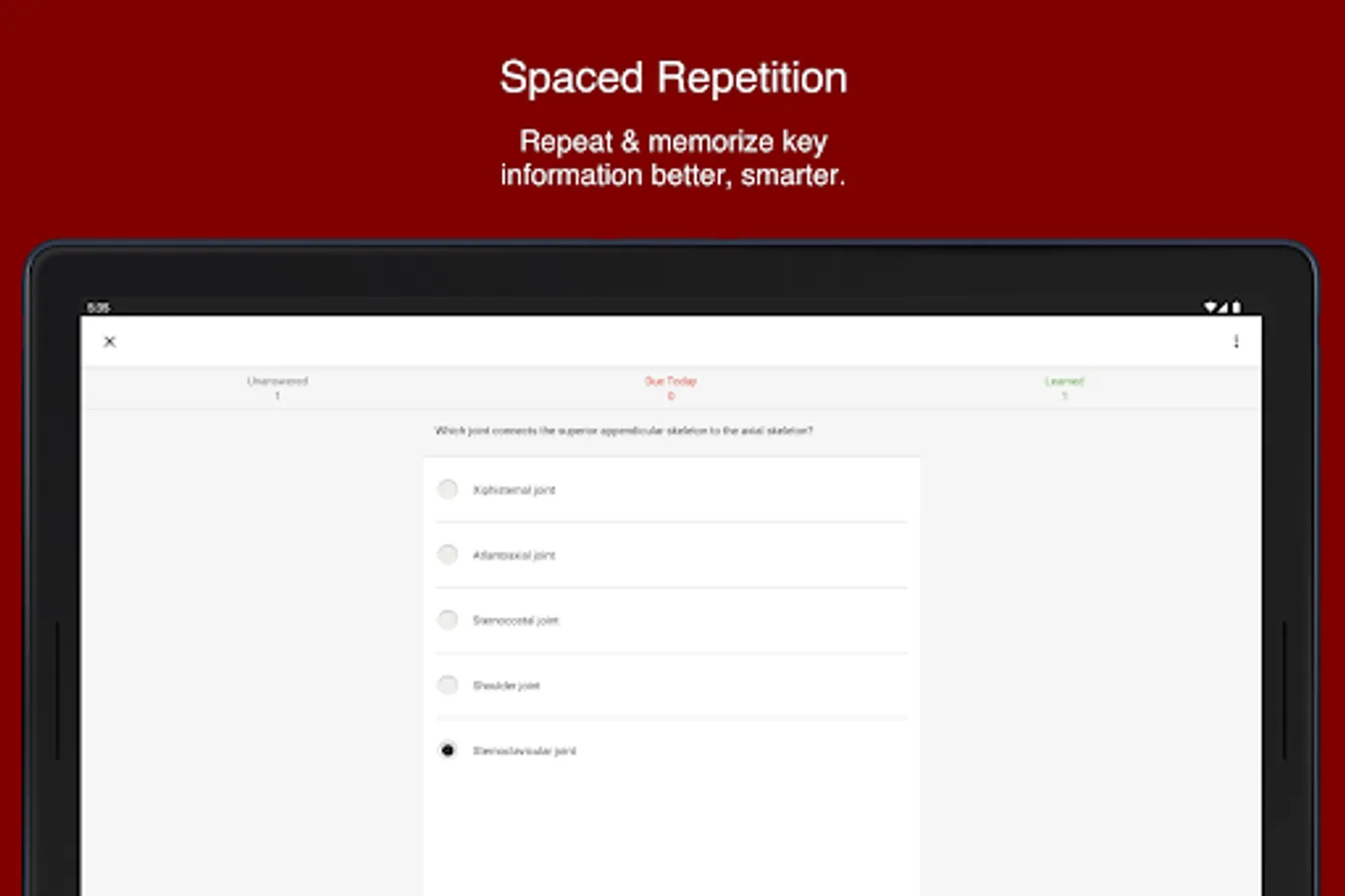 - Spaced Repetition Quiz: reinforce knowledge, driven by a smart learning algorithm