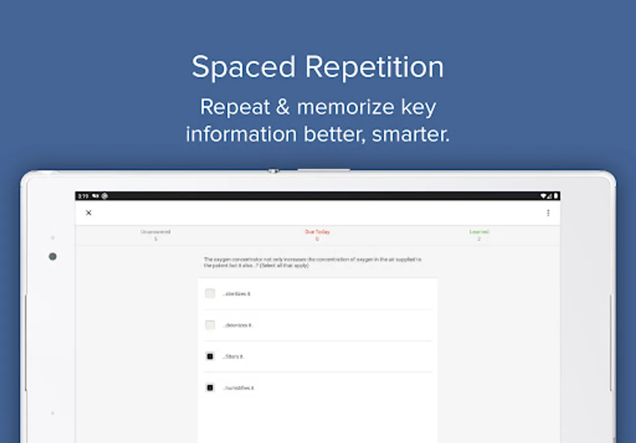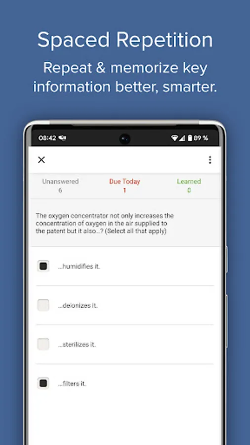 - Spaced Repetition Quiz: reinforce knowledge, driven by a smart learning algorithm