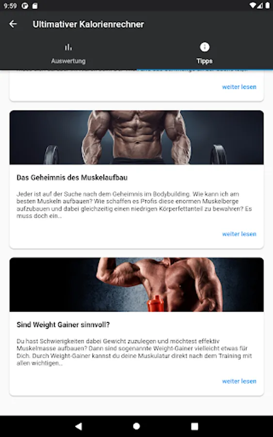 The ultimate calorie calculator provides an individual result, which is optimally matched to the preferences and body data of the athlete. As a bonus, you even get valuable articles linked to your result that are tailored to your specified goal. The whole thing is free of charge, without entering your email address and free of advertising.