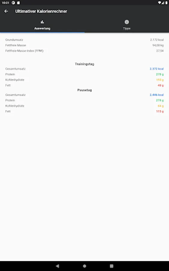 All popular calorie calculators use a fixed formula for the calculation of the macronutrient distribution, which forces the athlete into a diet that may not be suitable for him.