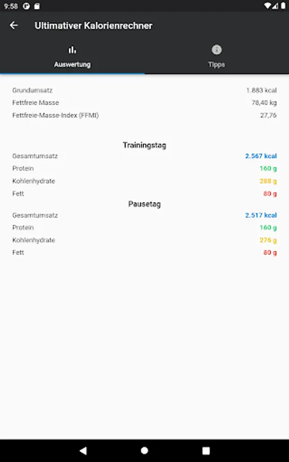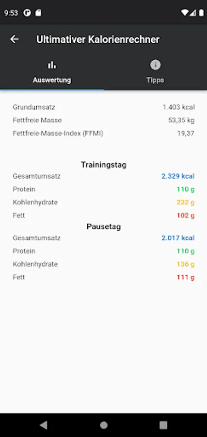 With the ultimate calorie calculator, on the other hand, the result is displayed live and directly, which enables quick calculations one after the other without entering sensitive data.