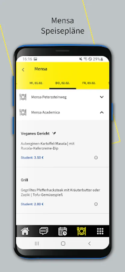 • Cafeteria: The offer of the respective cafeteria | Selection of the preferred cafeteria for display on the home page