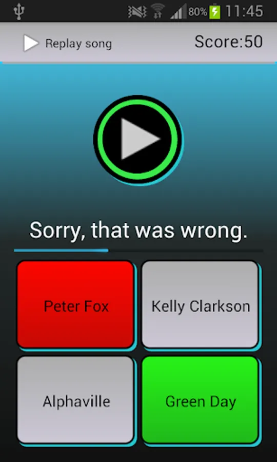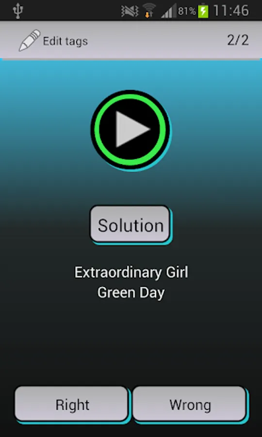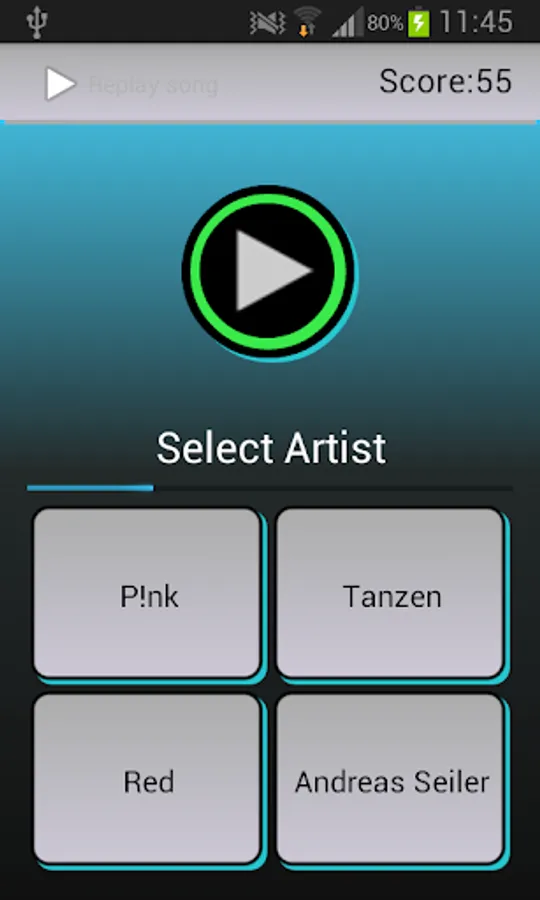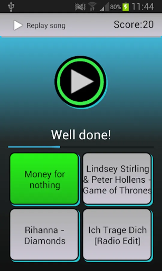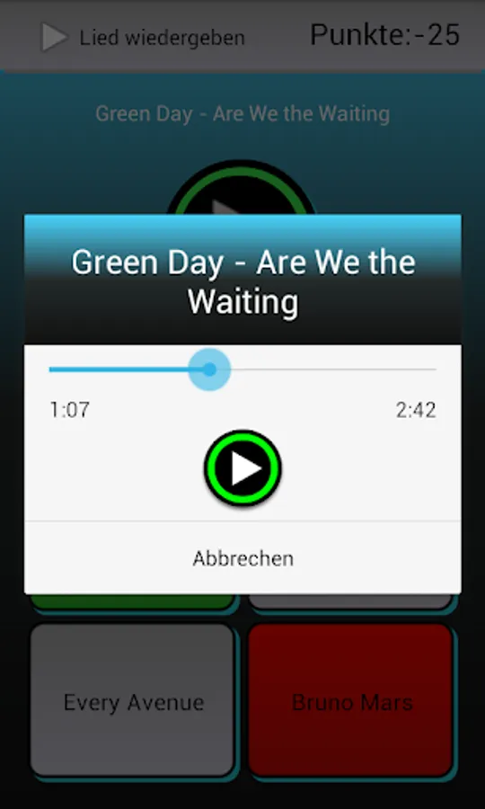 This app reads the mp3 tags from your own music and generates random suggestions for you to choose while listening to a randomly chosen part of the song. You have to select the artist and the songtitle in an adjustable period of time. If you can't believe that you were wrong you can listen to the whole song by clicking the replay button.