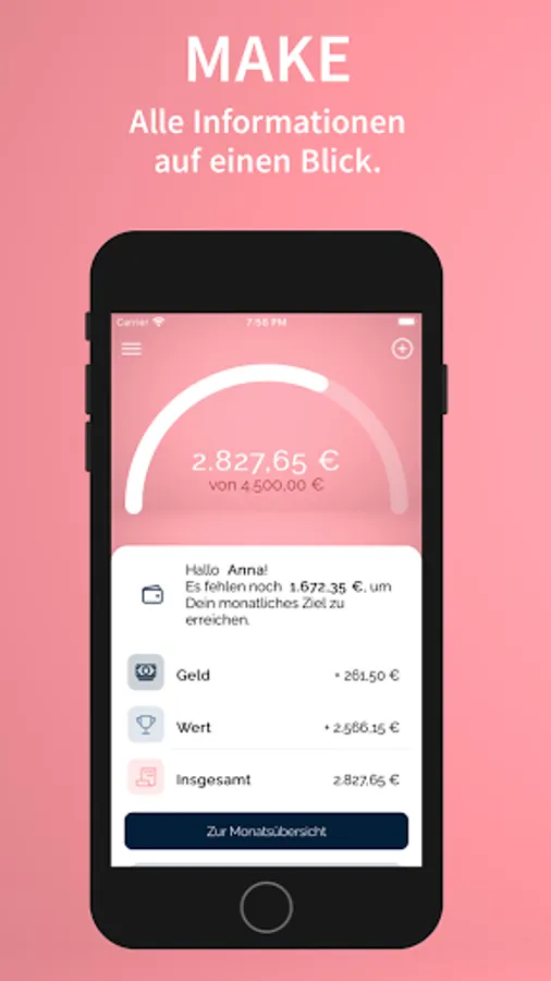 Define your monthly goals and watch as you get closer and closer to your target amount step by step.