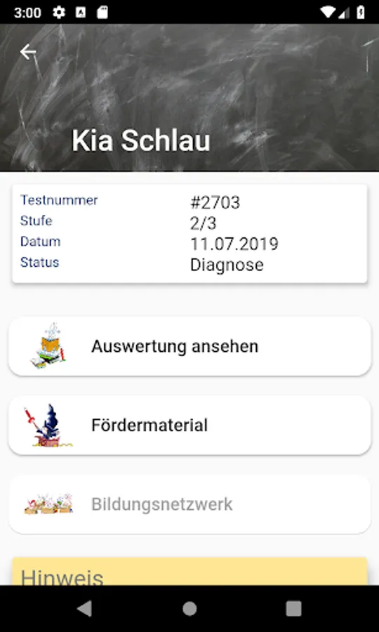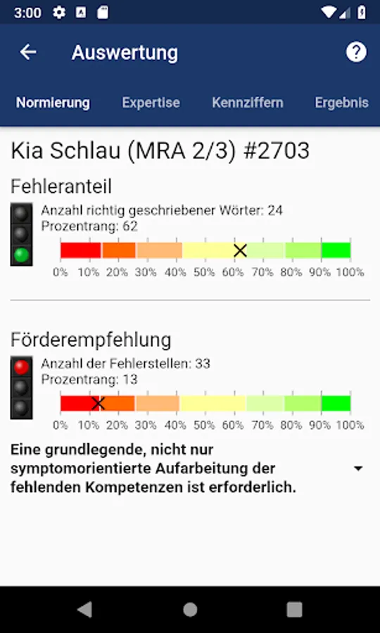 Compact diagnosis for parents, detailed performance profile for experts.